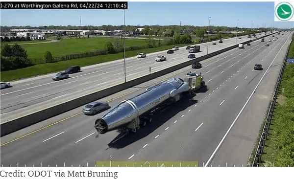 An unusual sight caught the attention of many on Ohio's interstates this past Monday—a rocket being transported on a flatbed truck from Copley to Dayton. The journey of the spacecraft was documented by traffic cameras, capturing a spectacle not commonly seen on the road.