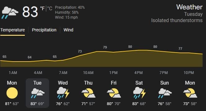Mostly Sunny & Possible T-Strom After Late Morning - Temps 83-85