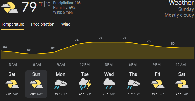 Mostly Cloudy - Temps 79 - 82