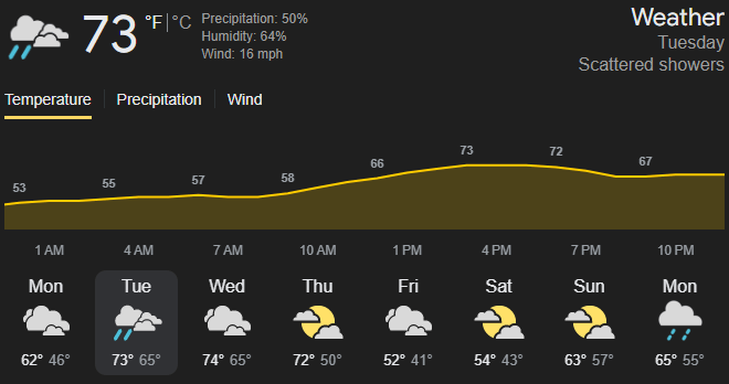 Cloudy, Possible Shower, Then Afternoon Sun - Temps 74-76