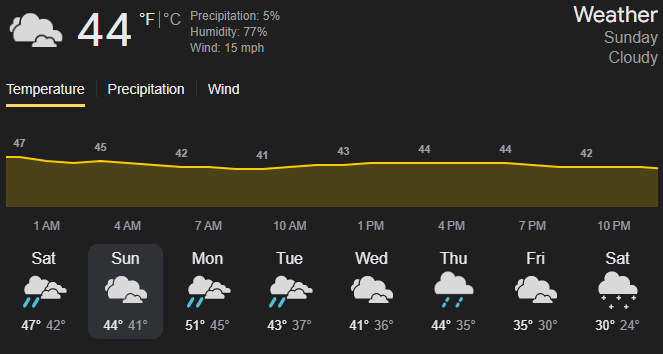 Mostly Cloudy - Temps 45-48