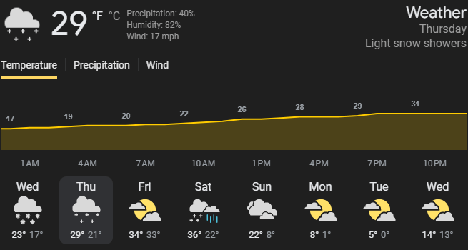 🌨️ Weather: Snow - Temps 29-32