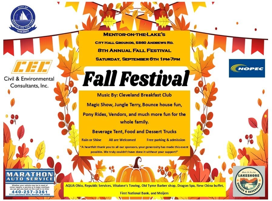 As the seasons shift and cooler weather approaches, Mentor is gearing up for a lineup of fun and festive fall events for all ages. From outdoor markets and garage sales to pet-friendly celebrations and holiday traditions, there's something for everyone to enjoy over the next few months.