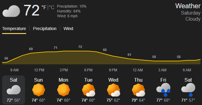🌥️ Weather: Partly to Mostly Cloudy - Temps 74-76