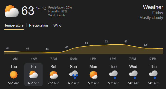 ⛅ Weather: Partly Cloudy - Temps 63-66