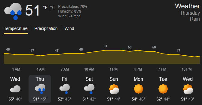🌧️ Weather: Windy, Rain - Temps 50-51