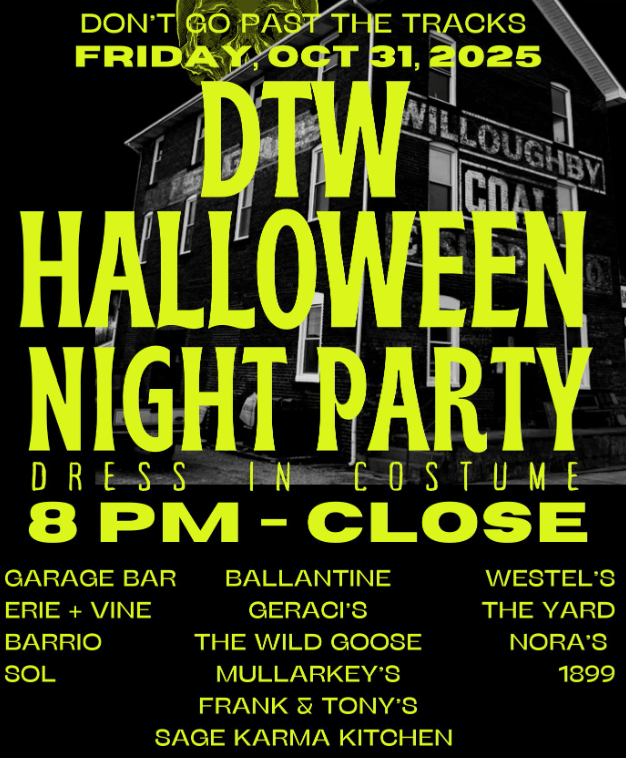 Downtown Willoughby is set to transform into a Halloween hotspot on Friday, October 31, 2025, for the annual DTW Halloween Night Party. Running from 8 PM until close, the event spans across a variety of bars and restaurants throughout the downtown district. Attendees are encouraged to come in costume as each venue offers its own unique brand of spooky fun, from costume contests to themed music and surprise festivities.
