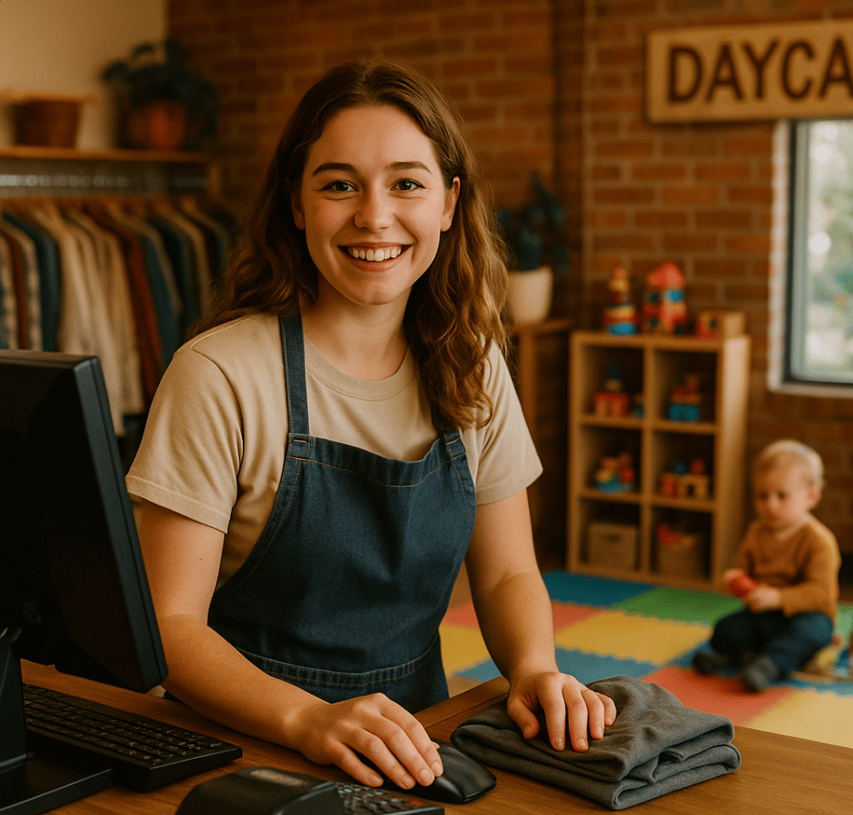 To address common employment barriers, the program includes an in-home daycare, with plans for a larger facility underway. On Tuesdays, moms also take part in life-skills classes covering financial literacy, relationships, and personal development.