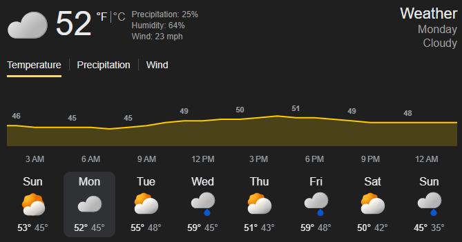 🌬️ Weather: Windy. Mix of Clouds & Sun - Temps 53-56