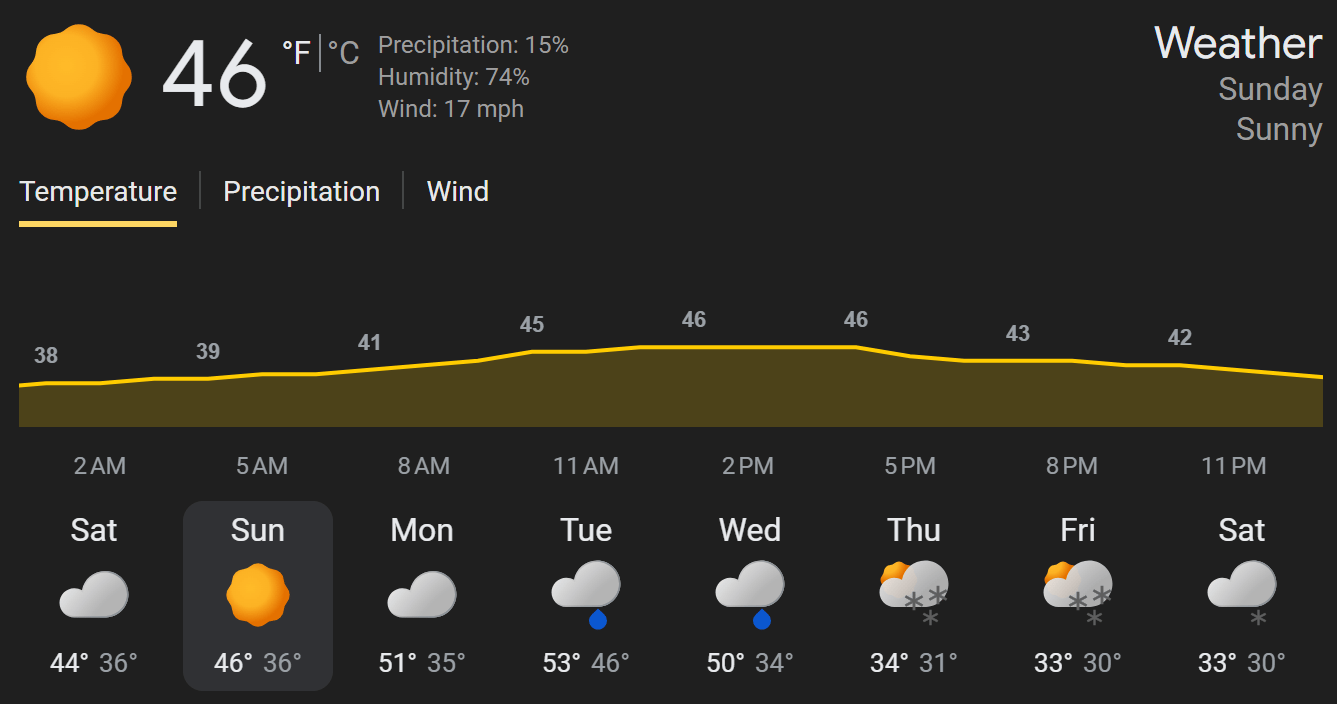 🌤️ Weather: Mostly Sunny by Afternoon - Temps 47-49