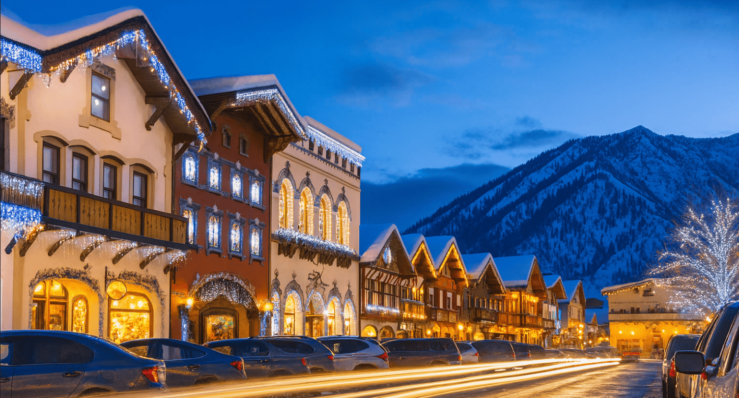 This storybook-style Bavarian village transforms into a Christmas postcard come December. With snowy streets, glowing lights, and Alpine traditions, the town buzzes with sleigh rides, snowshoeing adventures, and mulled wine in festive stalls. A visit to the quirky Nutcracker Museum and scenic sleigh rides through Icicle Valley add to the charm.