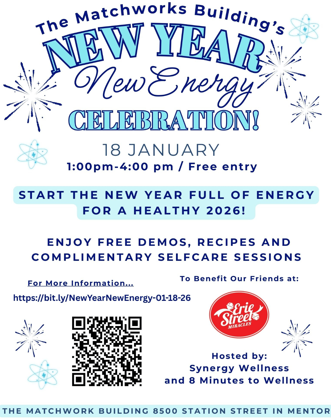 Mentor locals can kick off 2026 with health and inspiration at the “New Year, New Energy Celebration,” happening SUNDAY, January 18 from 1:00 to 4:00 p.m. at the Matchworks Building, 8500 Station Street in Mentor.