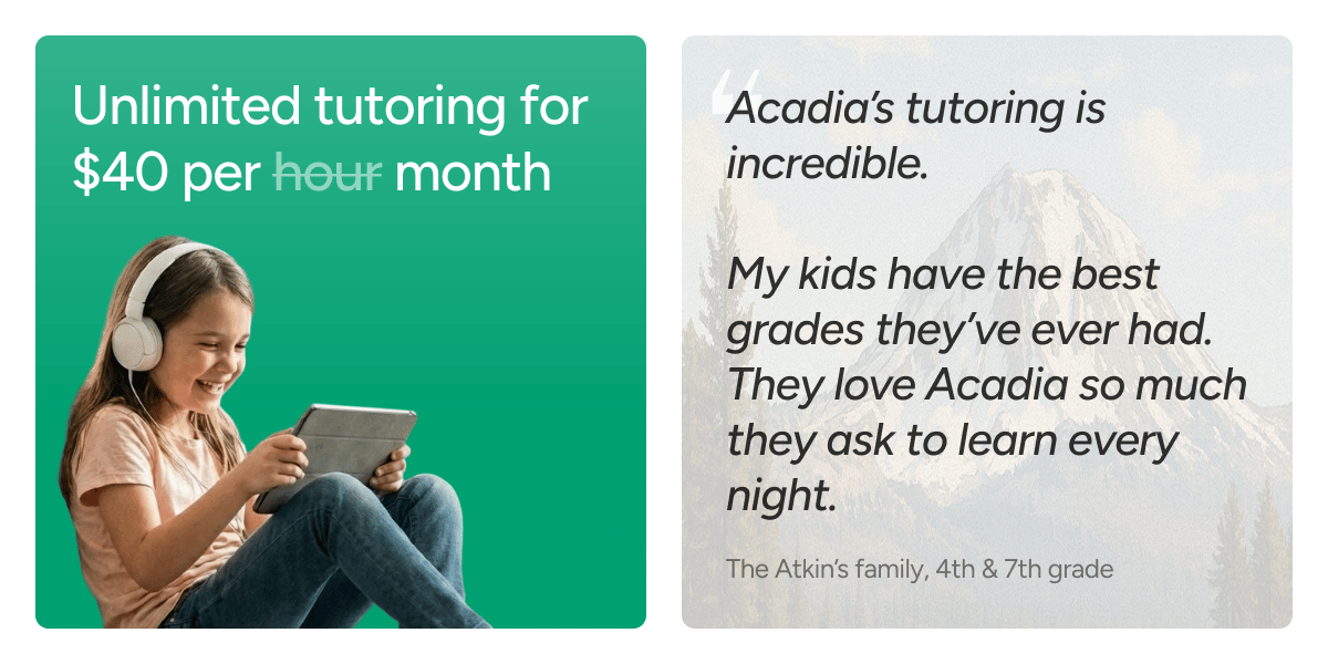 With 10,000+ families already using Acadia, students get support with homework, test prep, enrichment, and building confidence across subjects, all without locking into rigid schedules or pricey hourly sessions.