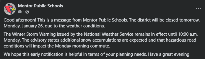 📰 Local News: ❄️ Snow Day for Mentor Students After Major Winter Storm
