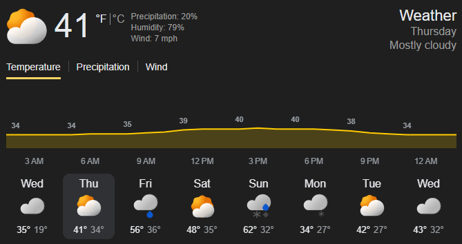 ☁️ Weather: Mostly Cloudy - Temps 46-48°