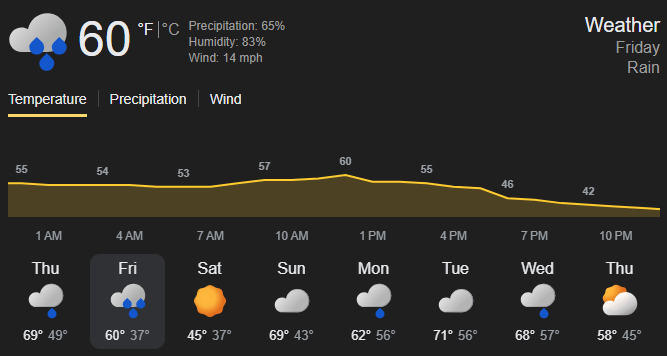 ☁️ Weather: Cloudy, Scattered Afternoon Showers - Temp 63-65°