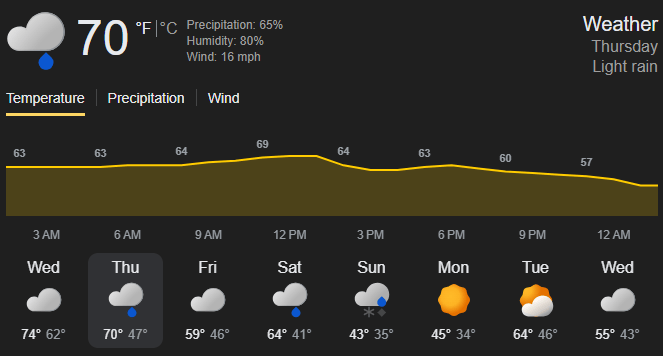 ☂️ Weather: Showers & Thunderstorms Developing Later in Day - Temp 70-73°