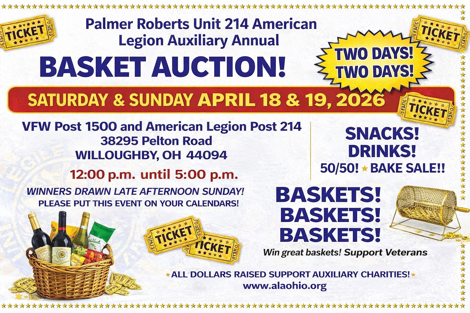 The American Legion Auxiliary Unit 214 Annual Basket Auction kicks off today (Saturday) from 12:00โ5:00 PMโand itโs one of those simple, feel-good local events where you can win great prizes while supporting a great cause.