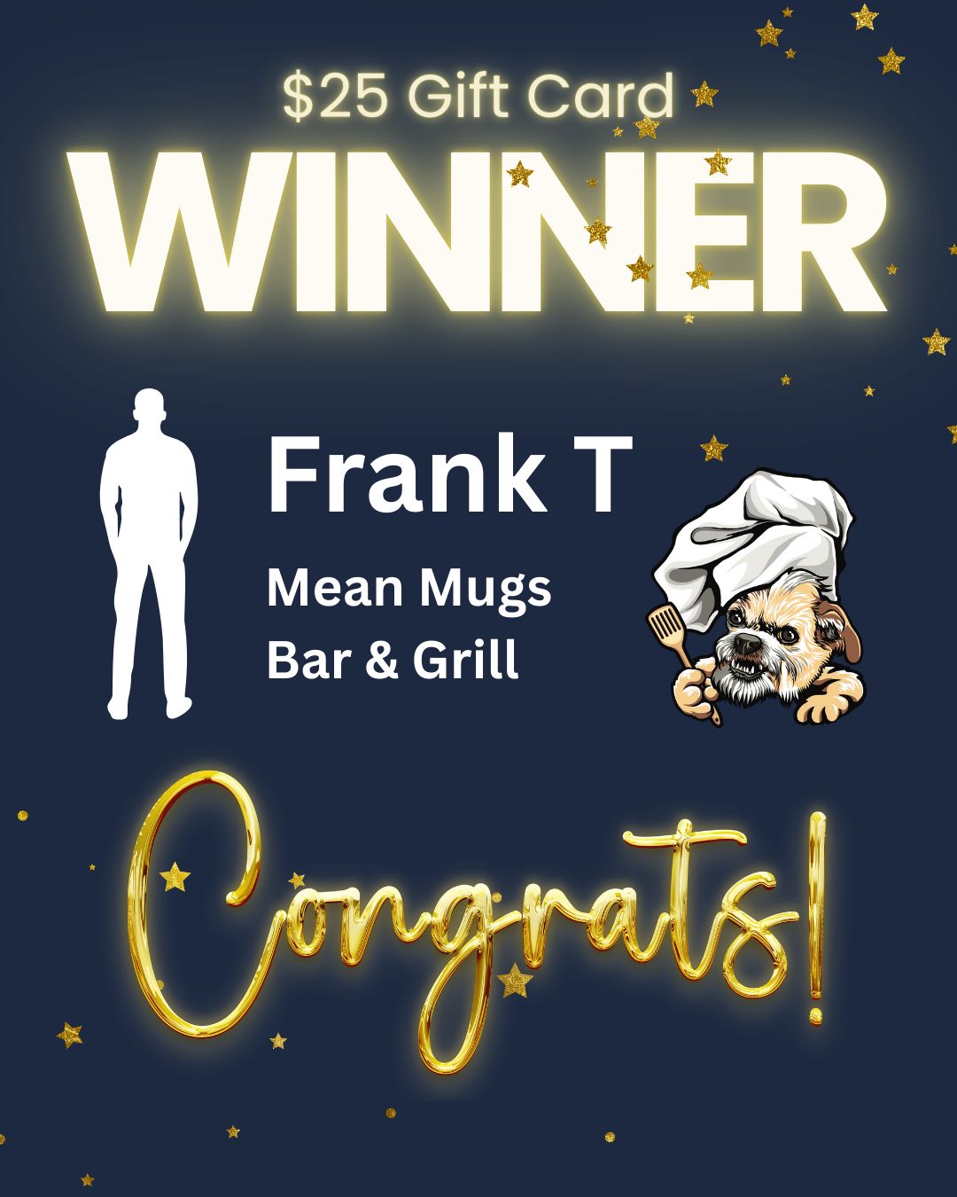 Congratulations to Frank T., who was randomly selected as the winner of our $25 gift card giveaway! Frank nominated Mean Mugs Bar & Grill as his favorite local spot — and we think he’s got great taste. So, Frank, you’ll be receiving a $25 gift card to your favorite local place, Mean Mugs Bar & Grill! You’ll be notified via email regarding further details. Thanks for participating!